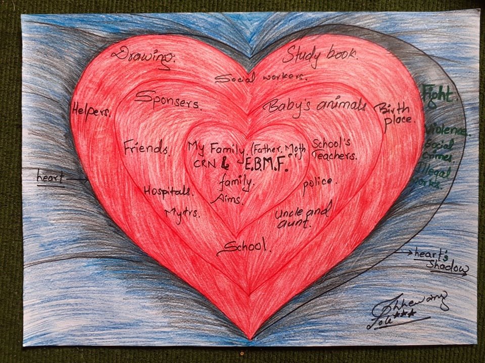 We have over thirty children in our care, who haven't been to school since March. Our houseparents are having to be incredibly resourceful in maintaining routine, exercise and education. Last month children undertook an exercise when they drew heart maps, showing their characters through what they liked and what they disliked.