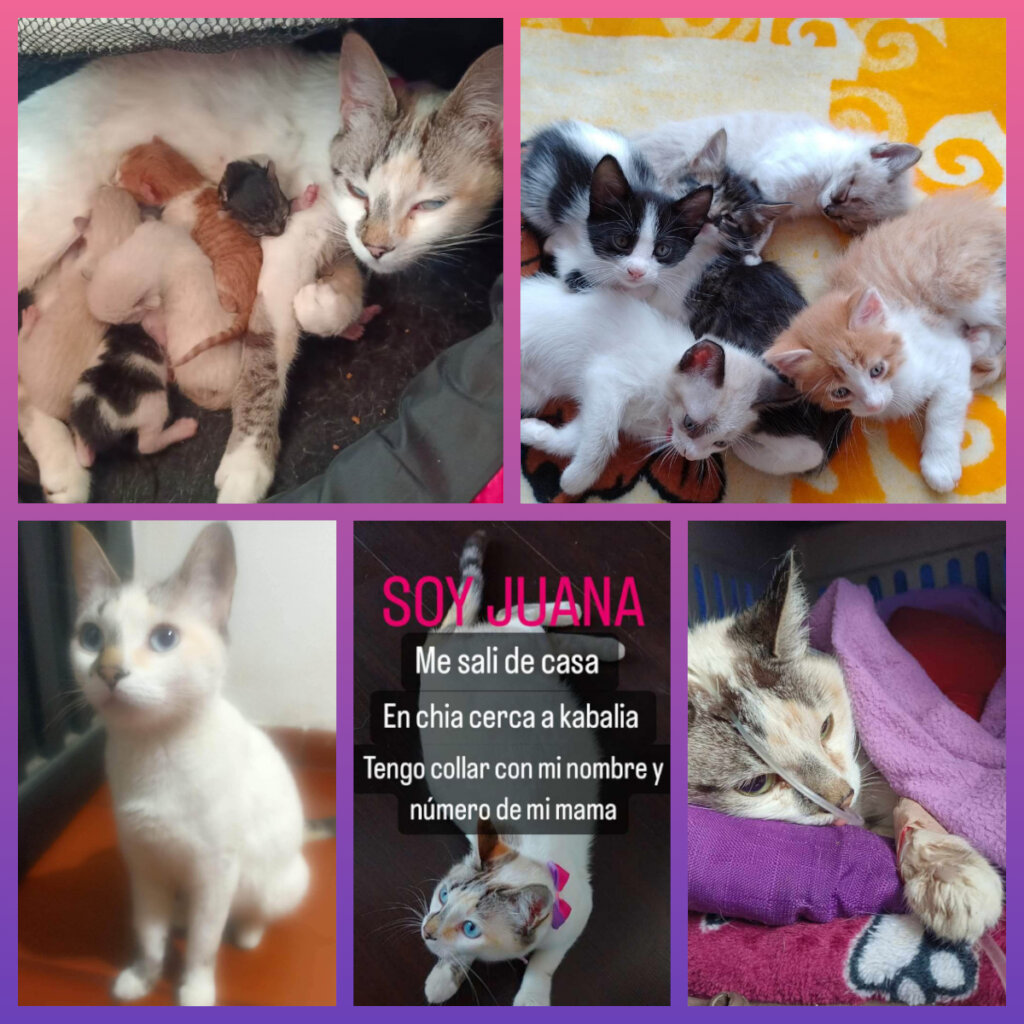 Dear donor and friend, this story is about love that lasts forever. Juana one day appeared in the patio of a humble family, who already had a couple of cats and dogs to feed. Besides, she was pregnant and the family asked for help. Luckily, a befriended vet offered to foster her, so that she and her unborn kittens could be safe. Soon they noticed, what a sweet cat Juana was and decided to adopt her. Juana gave birth to five beautiful kittens, and was the best mom ever, loving and caring. When the time came for them to cut off the invisible umbilical cord, they all found wonderful purrever homes and Juana finally could begin her own life. Her family adored her and was so devastated, when some day Juana simply disappeared. She was gone, lost!! She must accidently have opened the window and jumped out, without knowing how to survive in the streets, avoid cars and other enemies. Her family went out every night, calling her, looking for her. They left flyers everywhere, even contacted an animal communicator, but Juana remained invisible. Then one day, after two long months of despair, tears and growing hopelessness, someone called “we found your cat”!! We couldn’t believe it, but it was her!!! She was found in a residential zone, very close to her home, had lost a lot of weight and needed medical treatment, but she was home at last!!! Sadly, that was not the happy end we wanted for her, because due to her starving, she contracted hepatic lipidosis and lately passed away, surrounded by her beloved family. Most definitely, we will never forget her, and her spirit lives on in her five kittens and in our hearts.
