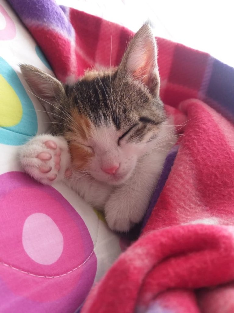 Dear donor and friend, as you may have noticed, our House for Cats and Kids is still a project to be realized, because we haven´t found our own place yet. Nevertheless, we’ve learned to make baby steps in order to keep on moving. We reached out to a small village, where the municipality are just beginning to start thinking about animal protection. Especially the rural areas with open fields and farms are affected by a huge number of cat colonies. Whenever we have some space at our foster’s, we receive a litter of kittens. We spay the mom and release her a week later at the same place we captured her. The kittens are dewormed and given in adoption, with the compromise to spay/neuter them before adolescence. This process is supervised. Another emergency hotspot is Santa Marta, a turistic coastal town with a tremendous feline overpopulation, where you can find hundreds of cats near the coliseum. A rescue of this nature is costly, not only because of the transport costs (by plane), but in contrast to the near by village, where the cats grow in a healthy climate, a 90% of the kittens is sick with dehydration, malnutrition, eye and dermatological problems, fever and cat flu. It’s a great effort, but when you watch them turning into healthy jumping fluffballs, it’s worth it. All of them find their forever homes, always! We are so pleased that you are a part of this story, thank you.