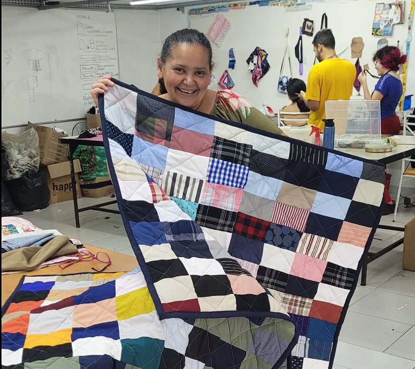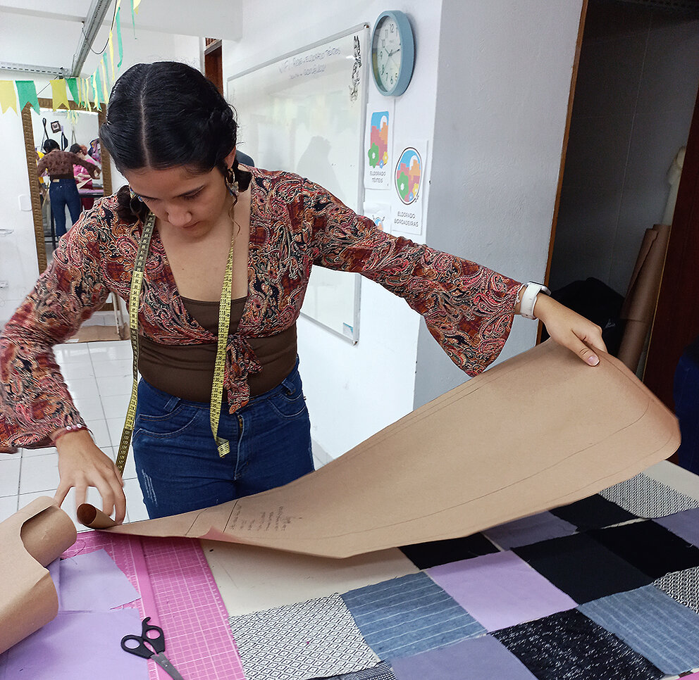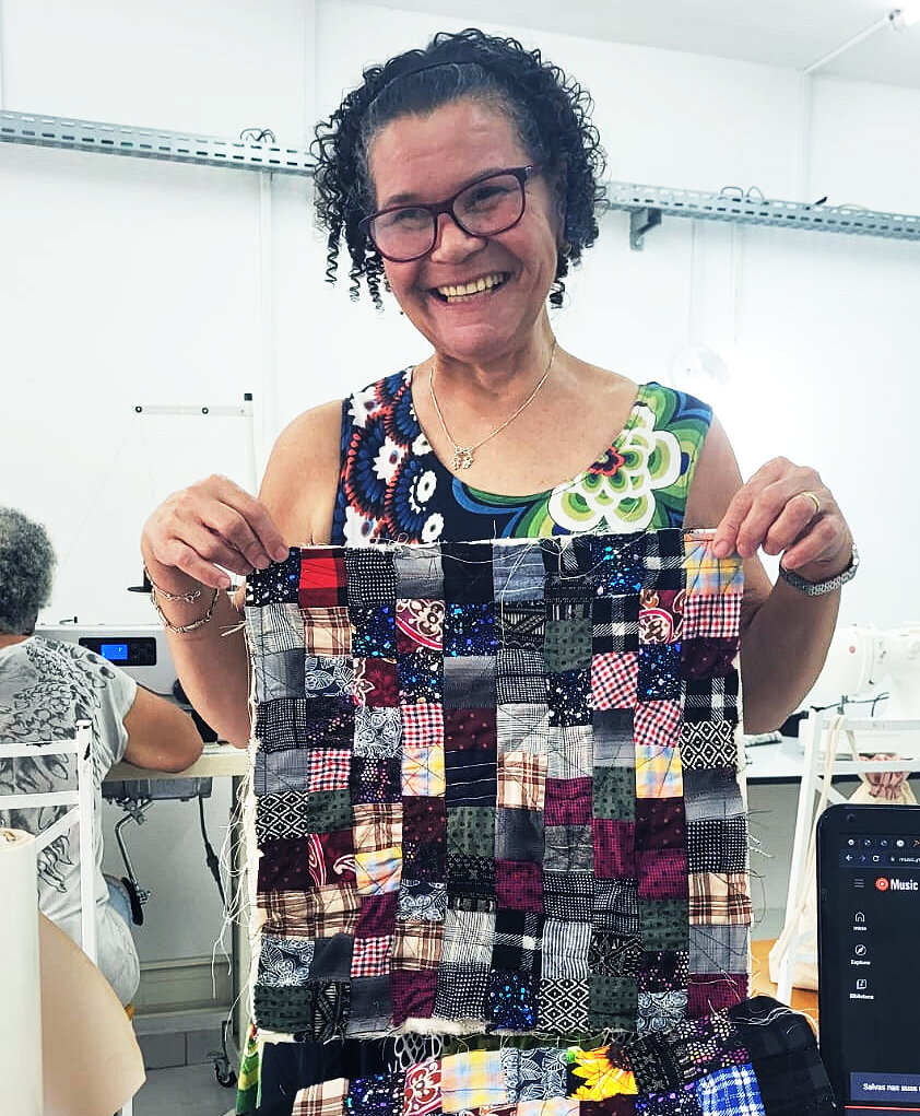 “I've always had experience in sewing, I worked for about 15 years just sewing, and as I was at a standstill, my sister-in-law told me about the project and I got interested in taking part. And there's everything here, all the materials we need, I can do sewing, I can do embroidery, I can learn and ask the teachers questions about anything I need."