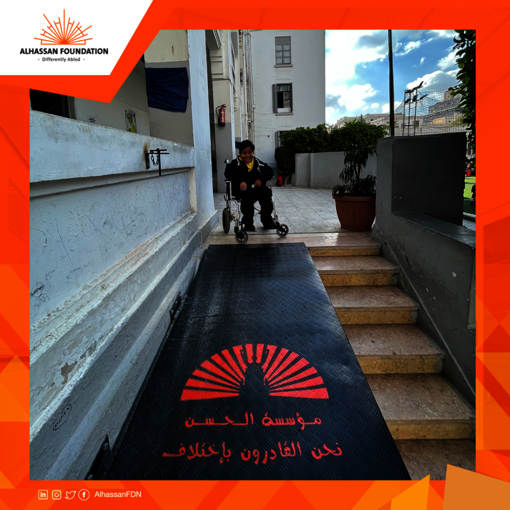Accordingly, Alhassan Foundation’s team moved immediately to equip and provide all kinds of accessibility necessary for this school.(three Ramps / Accessible bathrooms)