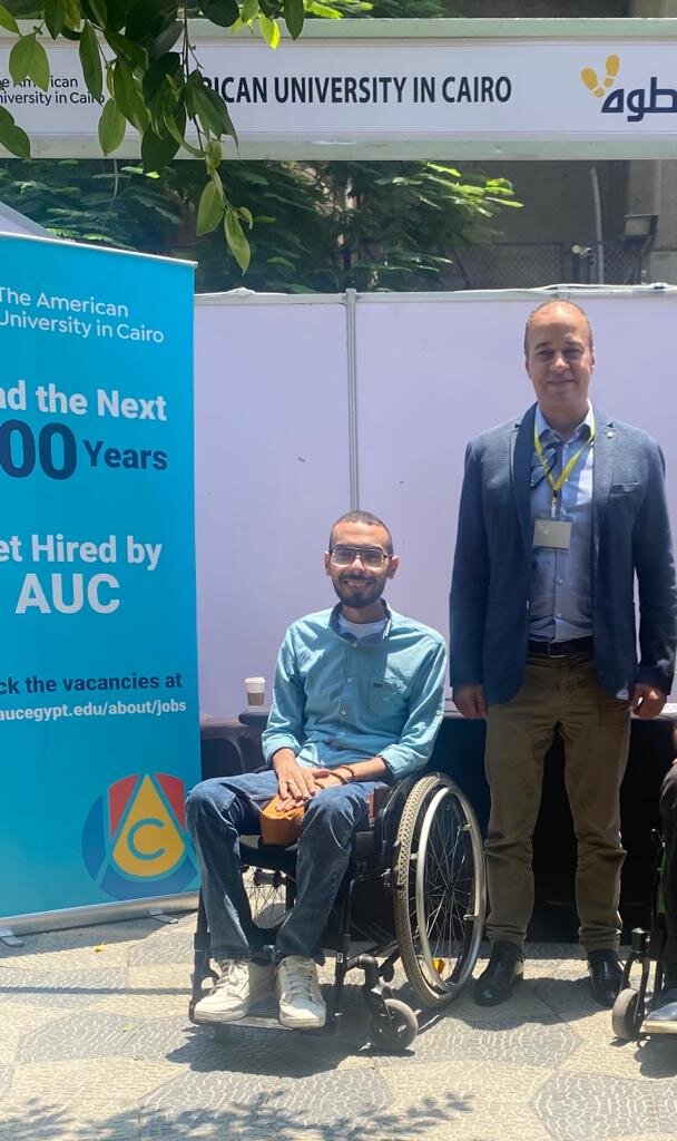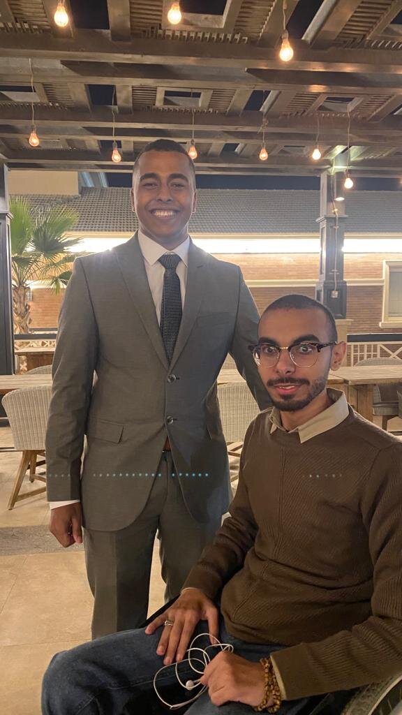 Today we present wonderful model, Ahmed, a 23-year-old young man from Giza Governorate, although he suffered from muscular dystrophy in his four limbs, he obtained a Bachelor's degree in Commerce from Helwan University.