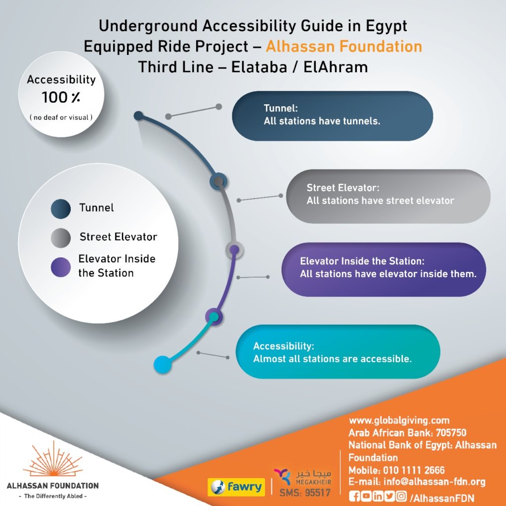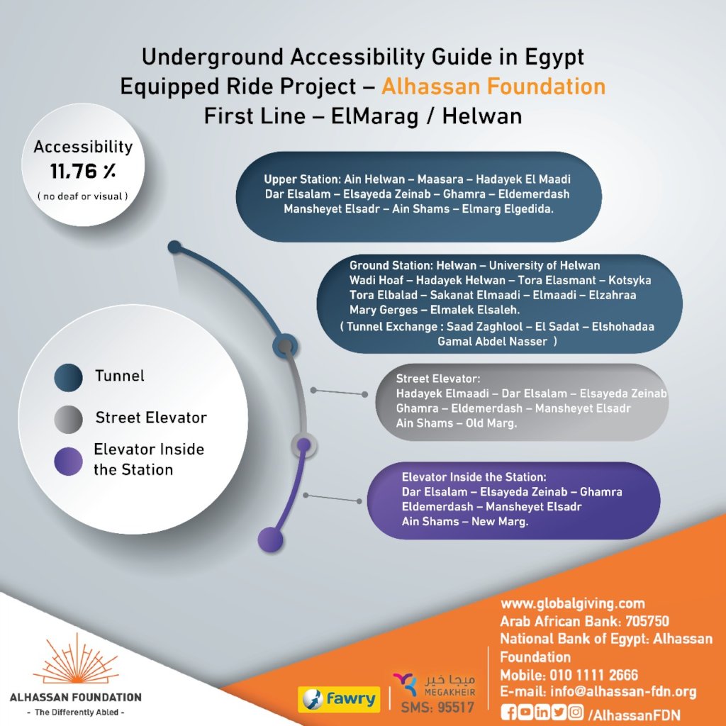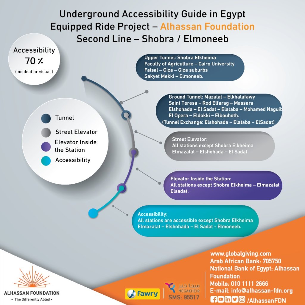 It’s our pleasure to announce that we have launched the 1st manual (guide) for Egyptian Underground/Metro’s accessibility for wheelchair users made by wheelchair users themselves. This guide wasn’t the result of our efforts as a foundation alone. It’s also the collective efforts of a group of our esteemed members (wheelchair users) who surveyed the metro stations themselves to assess its accessibility to be able to give an honest evaluation for each station and whether it’s wheelchair friendly or not.