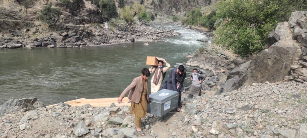 In Doaba, a remote village in the Kamdish district of Nuristan, 57 families live without a road. March is the peak of the melting season—when ice melts and rivers rise—and the community uses a cradle bridge to transport lifesaving supplies.