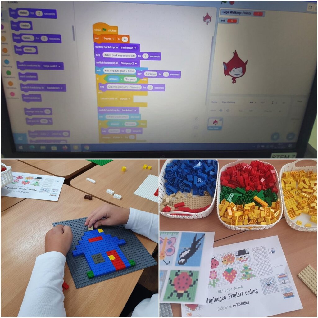 In the last quarter of 2022, elementary school kids attended the course on the basics of programming, programming language Scratch Jr and Scratch, how Scratch Jr works, how to use blocks and characters to program a simple game, and logically learn the basic programming commands through blocks. At the end of the course they created video animations and their own games.