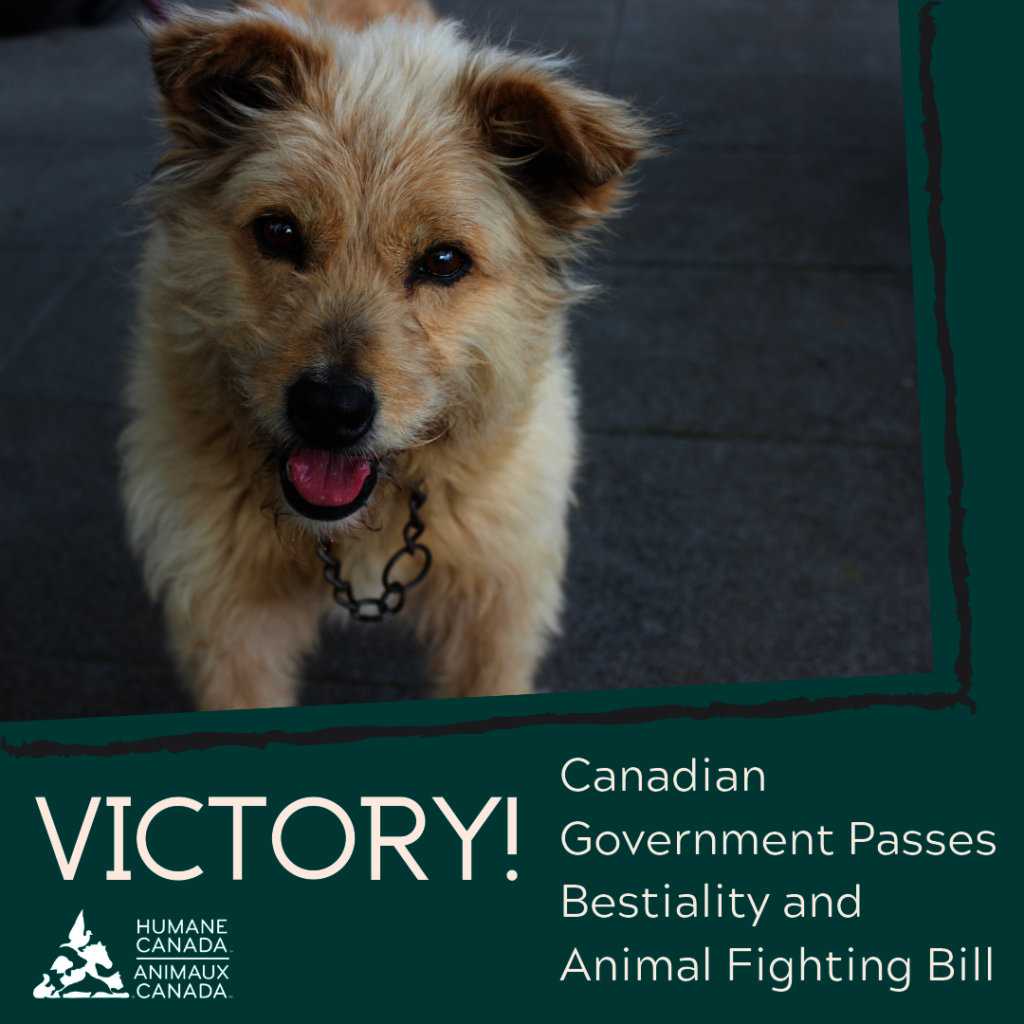 On Monday June 17th Bill C-84, An Act to Amend the Criminal Code pertaining to Bestiality and Animal Fighting, passed through Parliament and into LAW!