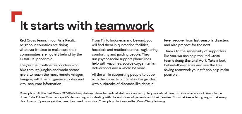 Australian Red Cross and the Red Cross Red Crescent movement support people who are most vulnerable in the COVID-19 pandemic. This includes support for our local partners across Asia Pacific and beyond to scale up their emergency activities in response to COVID-19 surges and sustain their essential services such as health, water, sanitation and hygiene services to people and communities into the long term.