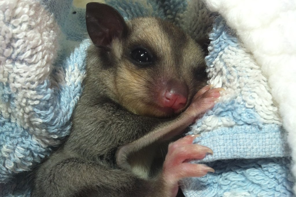 The animals we see admitted may be found in the rivers and oceans, or live high up in the trees. They all have different habitats and we try to educate everyone we can about the importance of making sure our wildlife still has a home in the years to come. For instance - squirrel gliders make their dens in hollow trees and line their nests with leaves. They live in family groups with usually one male, two females and their offspring. Unfortunately; Peter a little juvenile (pictured), was found out of place, all alone, with no mum in sight. Orphans like this in the wild may become easy prey for a predator looking for a quick meal, but luckily for Peter, he was found by a member of the public instead. They transported him to the Australia Zoo Wildlife Hospital where he was looked at by one of our vets. He was found to be well hydrated with no injuries. At only 50gms in weight, Peter is currently too small to be released, as are a lot of the orphaned animals that are admitted, but he will go into care until he is big enough to go back out into the wild again.