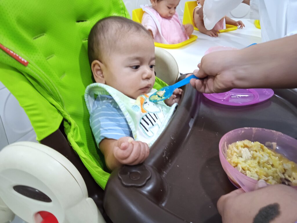 During their stay, all babies are fed according to their age and health condition. In order to develop their sensory self-regulation abilities to produce adaptive responses, better functional grasp and security when taking their first steps, these babies have early stimulation and intervention in fine and gross psychomotor skills.