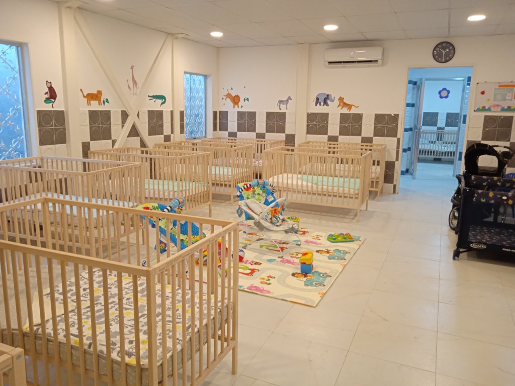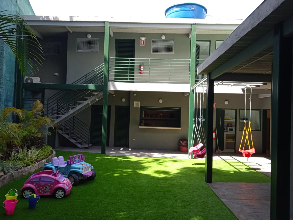 •  Indoors: reception, 2 playing areas, 3 bedrooms with 36 cribs, 1 isolation room, 2 bathrooms for babies, 1 dinning room, offices for management, coordination, social work and pediatrician, 2 staff bathrooms, 1 guest bathroomand a data room.