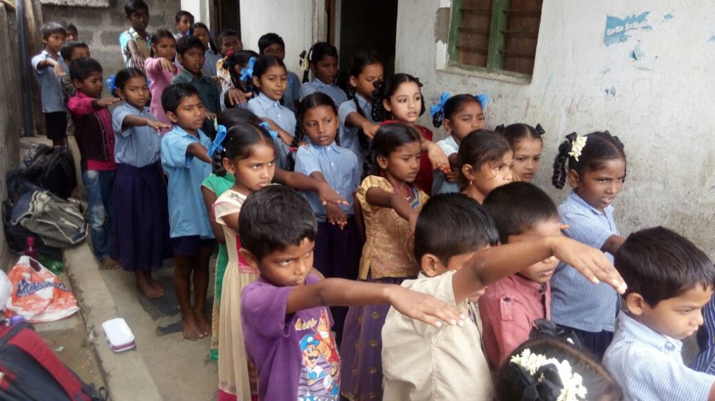 This project is supporting 3 slum schools for 150 children at Swarnabharathinagar, Dasaripalem and Lingayapalem of Guntur city. Already the academic year has been started and completed first quarter. Our teachers are effectively operating the schools to care and educate the children in the locality. We are providing basic primary education and skills training with nutrition lunch for 150 children. Already one unit test completed and children gets best progress reports.
