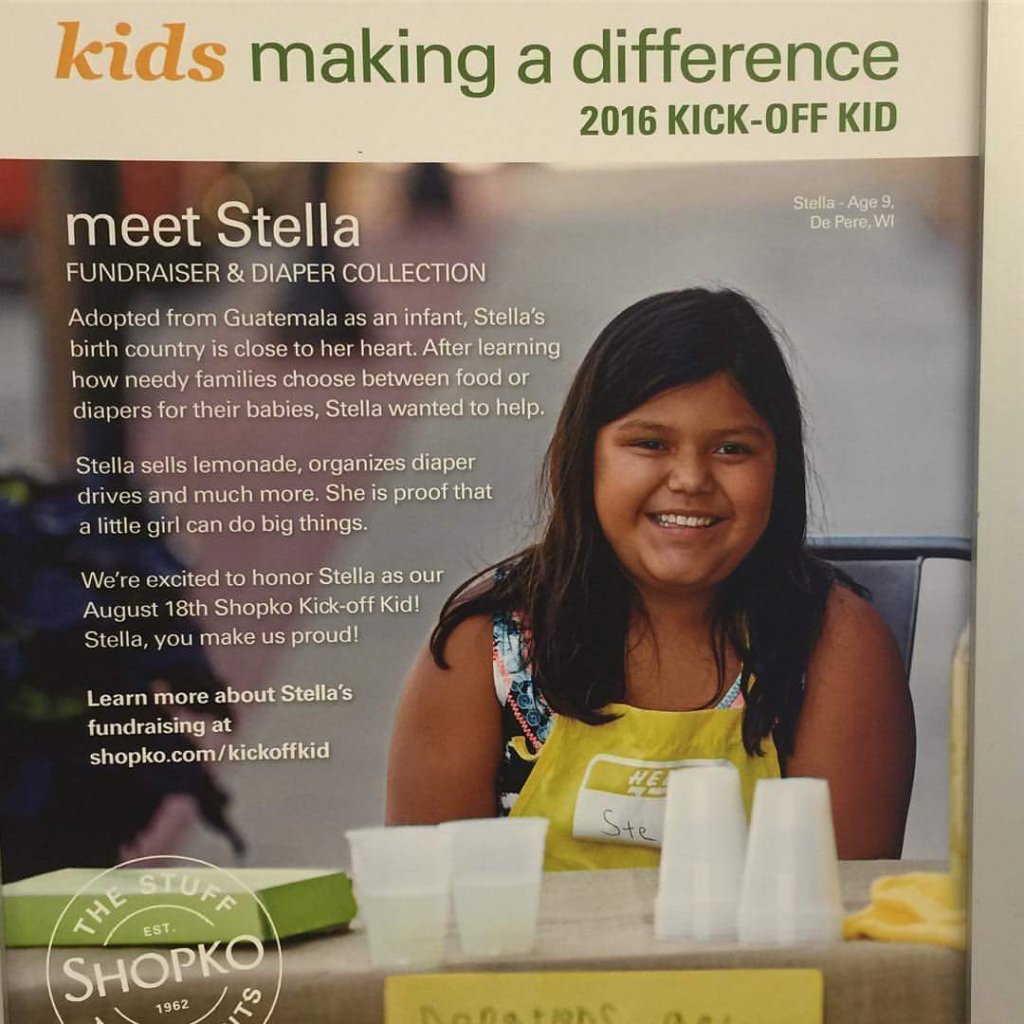 Now life is about to get even more exciting for Stella… Shopko and the Green Bay Packers have teamed up to celebrate Wisconsin children who are making a positive impact in their community and beyond through Shopko’s Kids Making a Difference program. And.. they selected STELLA to be the Kick-Off Kid at the August 18th preseason game at Lambeau Field!