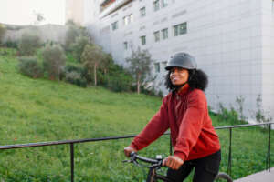 Covers a helmet, reflective tape, and a bike bell to help one student ride more safely to class and clinics.