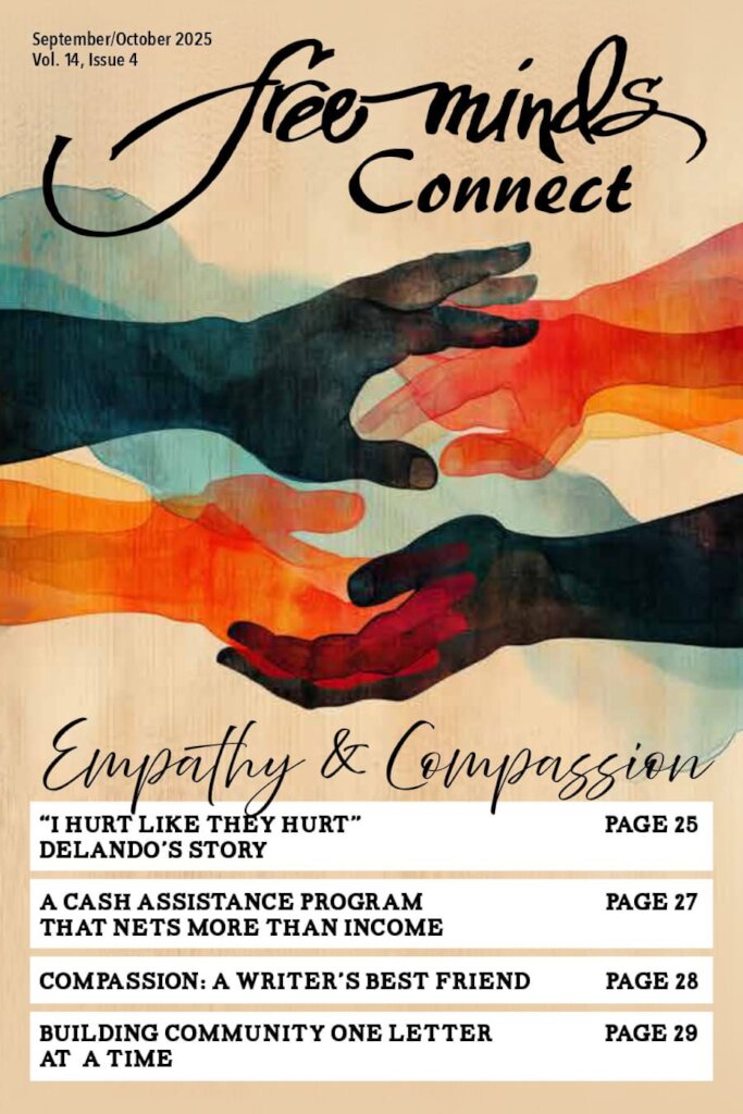 In the most challenging of circumstances, we can find the strength and courage to grow, persevere and thrive through the perennial power of reading, writing, and fostering creativity. This belief is encapsulated in the mission of Free Minds' Prison Book Club’s regular programming, including our Connect magazine, which is released five times a year featuring member and staff contributions, the Books Across the Miles (BAM) selection where members choose from a ballot, and Write Nights, which allow for community members, volunteers, and others to provide thoughtful responses on incarcerated member’s poetry.