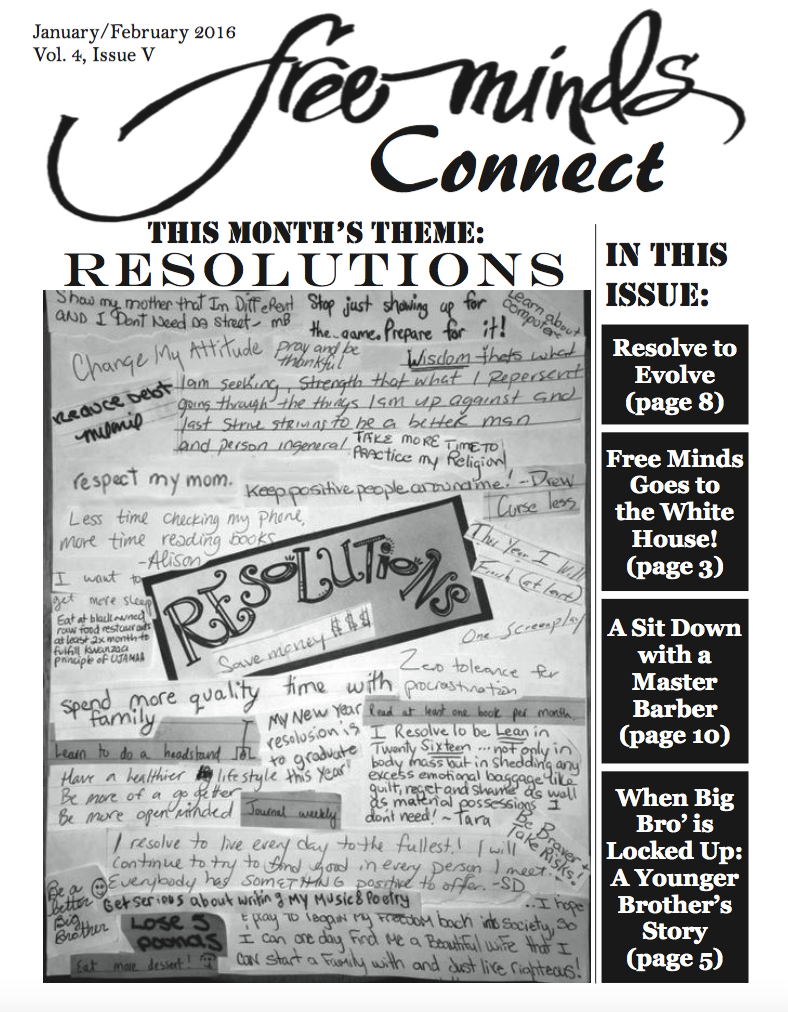 Last month’s theme for the newsletter, the Free Minds Connect, was “I Believe,” with Free Minds members, staff, and friends sharing their experiences with the power of belief.