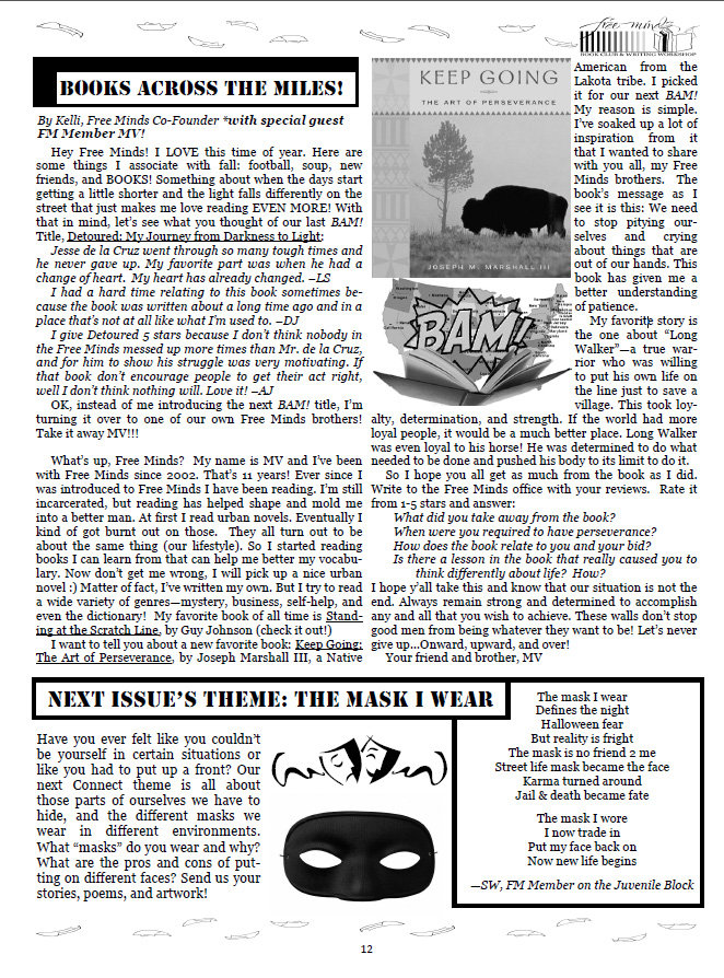 Our Books Across the Miles! (BAM!) initiative continues to inspire Free Minds youth incarcerated in federal prisons across the country. Though they are far from their families and communities, the BAM! program provides a means for Free Minds members to connect through a common book. Our last BAM! selection, The Pactby Sampson Davis, George Davis, and Rameck Hunt, tells the true story of three young men from the streets of Newark who became successful doctors. One Free Minds member, Alvin, wrote us a long letter about what the book meant to him. He told us:
