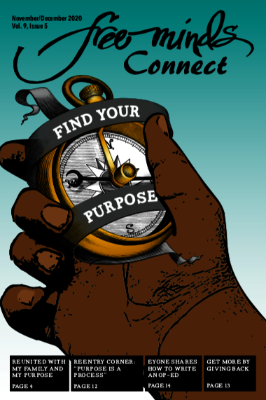 Through powerful testimonies, eye-opening poetry, and weeks of collaboration, the Connect—Free Minds’ literary magazine—connects staff, Poet Ambassadors, and currently incarcerated members to the wider community. The creation of one issue of the Connect involves intensive teamwork between the Free Minds editorial team, staff, volunteers, and both incarcerated and reentry members. The Connect allows members to foster their passion for reading and writing by engaging in fruitful conversations through poems and essays exploring a wide range of subjects. Additionally, this magazine provides Free Minds members a safe space to share their voices, their stories, and most importantly, to be seen.