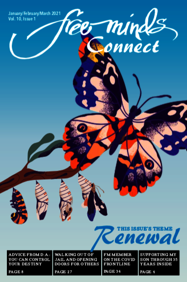 The latest issue of the Connect is on the theme Renewal. Free Minds member Meechie recently wrote in to express his appreciation for the Connect: "I love reading the Free Minds Connect. It just makes my day every time I see my name on the mail list because even though it's the only mail I ever receive, it's the best mail to receive. It keeps my mind free with every issue. It's like stumbling upon a ton of water in a desert and my mind is always thirsty for knowledge and new inspirations. So thank you all and keep them coming."