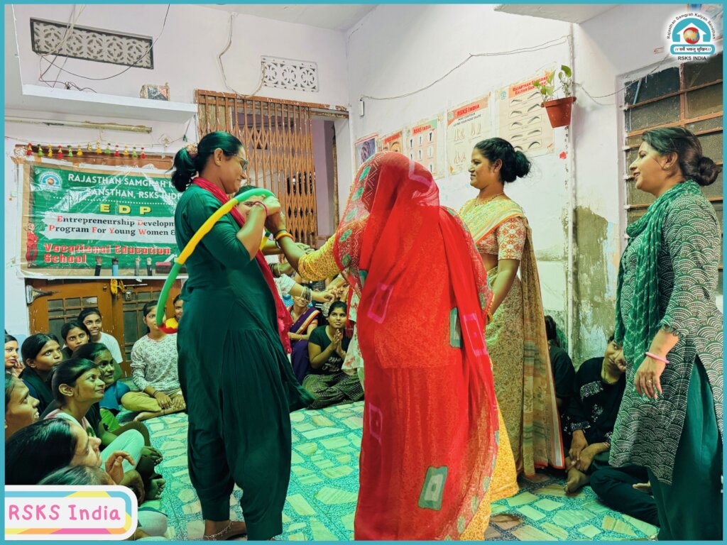 Rajasthan Samgrah Kalyan Sansthan organized a series of enriching activities as part of the "Beauty Parlour Vocational Education School" program, aimed at equipping the 15 trainees with both technical and essential life skills to ensure their success beyond the training period. The program spanned three months and included not only beauty and wellness training but also supplementary sessions to prepare the women for real-world challenges. Among the key activities were life skills sessions, designed to help trainees develop important personal competencies like decision-making, problem-solving, and time management.