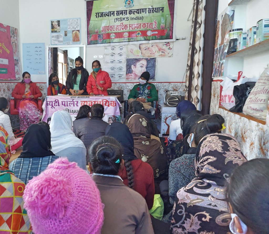 In this context, RSKS India conducted Parents Teacher Meeting at the Garment Making & Beautician vocational education Training Program of RSKS India. In this parents teacher meeting, all the parents of the girls and women trainees were called and then the master trainer showcased them the talent of their daughter or daughter in law. The master trainer also shared the mistakes or problems the girls and women are facing to their parents so that their parents can understand it and they will also try to solve it. The parents were amazed to see the talent of their child and encouraged their daughter to learn more to become successful in the respective field. At the end of the parents teacher meeting, snacks were distributed to everyone who attended the program.