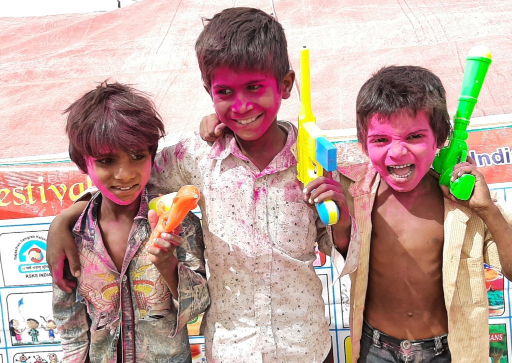 RSKS India organized ''Holi Mahotsav'' in 18 slums where around 500 street and slum children participated. In the program, we first distributed Colors, Gulal, Pichkari, sweet, food packes consisted of delicious rule, pastry, paties, kurkure, chocholate, cream rule, cup cake, etc. to all children. The children enjoyed the food stuffs, then they played holi with colours. They were so much excited while playing holi.