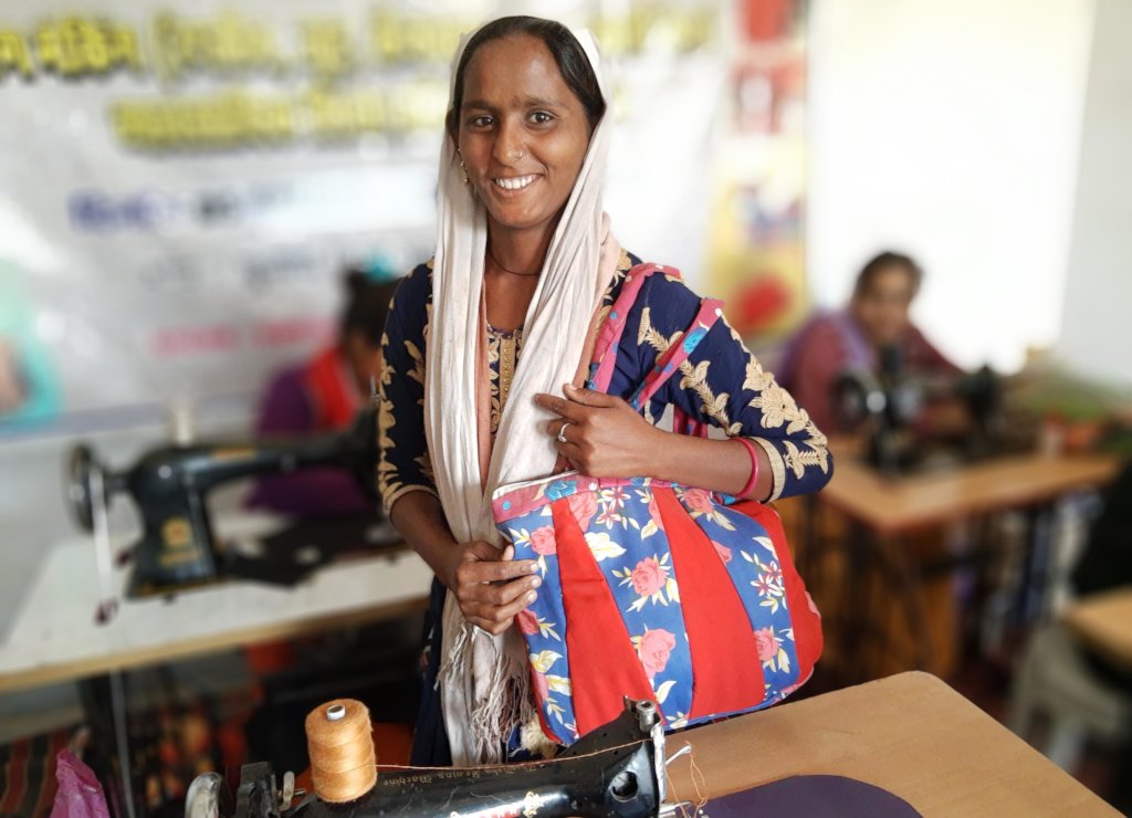 After training, I sit at home and sew bags and I get bag orders from nearby women, which helped me in earning my income. At the time of lockdown, orders were made to sew masks by RSKS organization and various other organizations. In lockdown, I got an order for sewing 7500 masks from which I got income. Now from the market also, I get orders for sewing bags. Thus I earn 5000 to 7000 rupees per month. Now I support household income and expenses too. I have become self-sufficient today. The entire credit goes to the team for which I thank the RSKS organization.