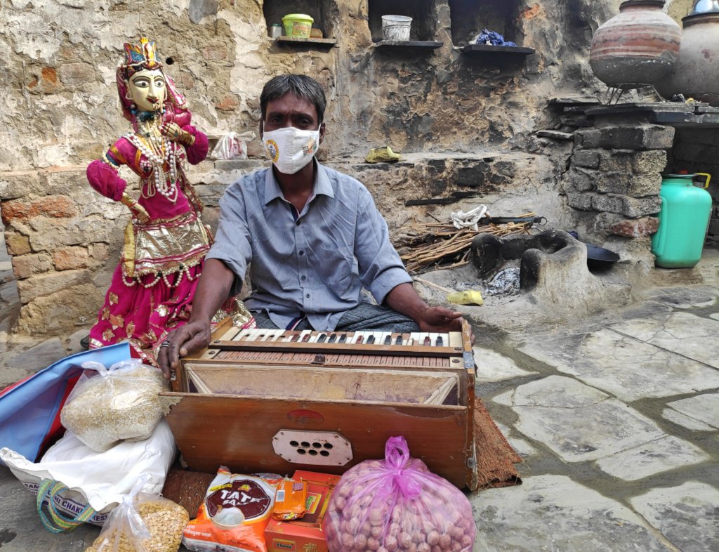 In the meantime, a helping hand was extended by the RSKS organization. The RSKS organization surveyed artists like us who are struggling with food ration. My name was also taken in it. Afterwards I got a ration food kit and hygiene kit by the RSKS organization. When I got a ration food kit in my hand, happiness tears came in my eyes. This ration kit contained flour, rice, lentils, spices, soybeans, salt, oil, soap, etc. and the hygiene kit contained masks, sanitizers, handkerchiefs, etc.