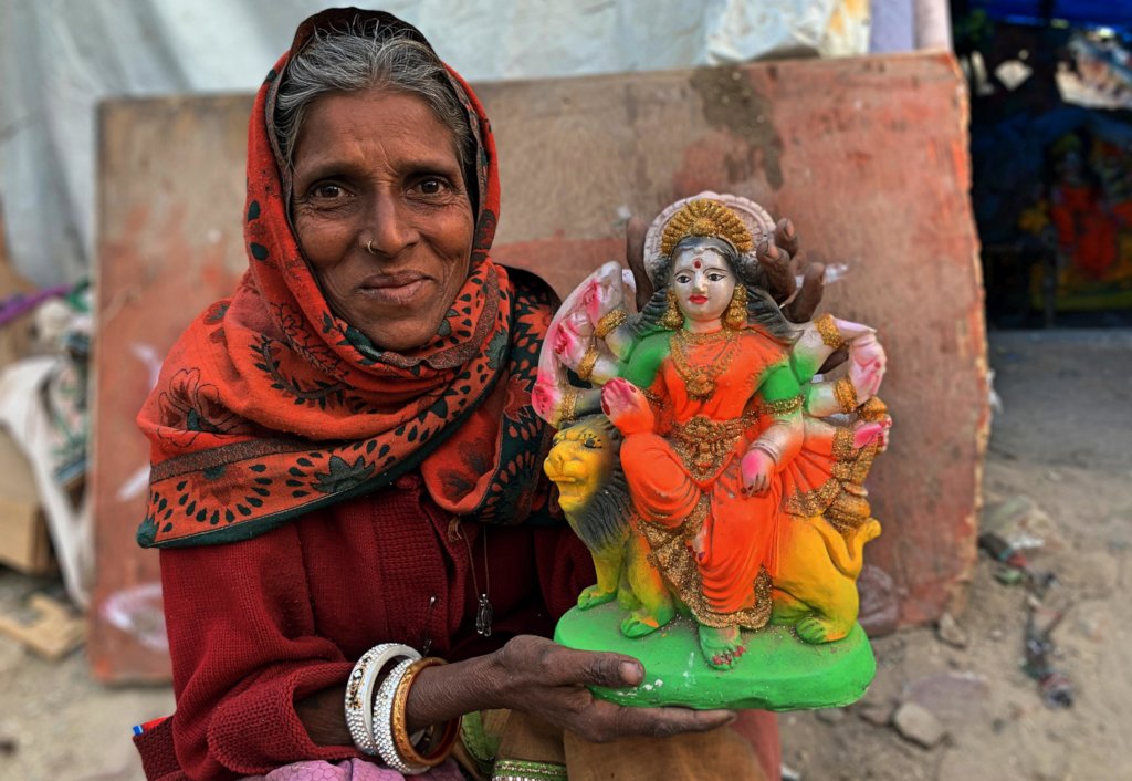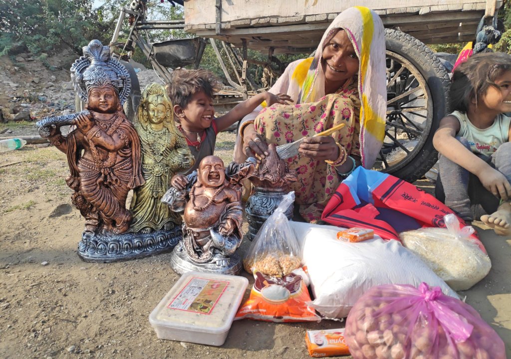 My name is Bindiya (Name Changed) and I am 59 years old. I live with my family with my husband and five children. The main business of our family is idol making. I work with my husband and children to make different types of idols. We live in a hut which is on the roadside. The work of the idol is more on the festival, that is, we earn only during the festival season, but due to Corona epidemic, the market has faded this year. No festival was made this year, which did not sell our idol. All the sculptures made by us remained intact and they did not earn me any income. My family and I had to face the problem of livelihood.