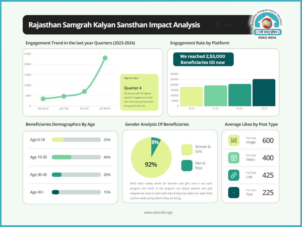 Rajasthan Samgrah Kalyan Sansthan (RSKS India) has been working tirelessly to empower rural and marginalized women, girls, and children. Through various initiatives, including Self Help Groups, Her Voice: Stop Violence Against Women, and Lifeskills Entrepreneurship & Leadership Training, RSKS India reached around 35,000 beneficiaries. These initiatives aimed to promote economic empowerment, social justice, and human rights. RSKS India provided training, capacity building, and support to women, enabling them to become agents of change in their communities.