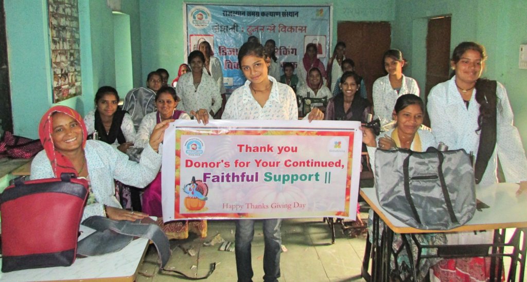 Rajasthan Samgrah Kalyan Sansthan, with the financial support of GlobalGiving Foundation, has organised "Skill Development Training" aims to make women self-reliant and empowered. Under the "Skill Development Training", designer bag making training is being provided to deprived poor women and school drop-out girls in Ajmer Rural Area. During this training program, trainees take regular classes for everyday and learn to make many sorts of bags as tote, regzine, canvas, leather, jute, parachute, clothe, etc. Training is provided in both ways i.e., theoritically and practically which makes the learnings easier for the women trainees. In addition to this, E.D.P., life skill training and games activities are also organised for the trainees for their capacity building. At the completion of the training, an exhibition cum sale will be organized to make the trainees learn the art of better marketing.