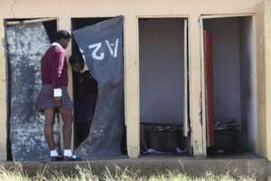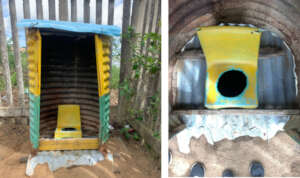 Builds two ventilated cubicles with a handwashing station and sanitary disposal setup.