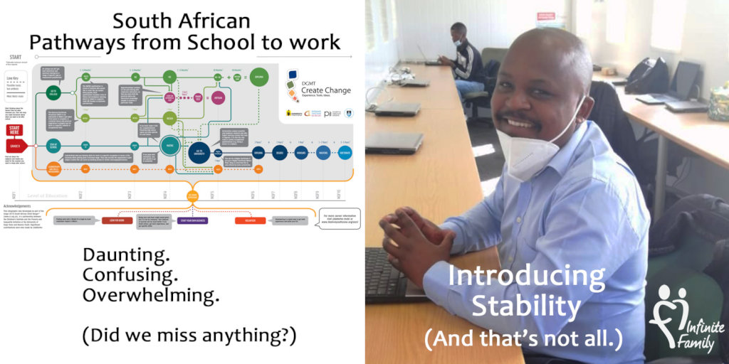 Your support this year is eliminating many of these barriers to getting a good job. We thought it would take until early 2022 to get started, but with your help, the first 50 of our Net Blazers are starting now via the Global Skills Initiative South Africa. Working with other NGOs to create access to Microsoft’s digital skills building programme, Infinite Famiy has created the infrastructure for our alums to return to the LaunchPads to take intensive, online courses in ten (10) different areas including: Customer Service Specialist, Data Analyst , Digital Marketer, Financial Analyst, Graphic Designer, IT Administrator , IT Support/Help Desk Technician, Project Manager, Sales Representative, and Software Developer.