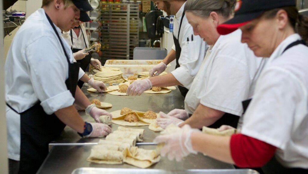 The recipes are a reflection of the region and naturally rose to mind when we brainstormed recipes for this project. The ability to integrate healthier versions of ingredients was also important in the consideration of the recipes. We wanted the recipes to be fun, reflective of family and community, while also having the ability to go to scale within the cafeteria. The recipes also had a kind of inter-tribal quality to them because they are regional and there are different versions for different Tribes, but the essential elements are similar.