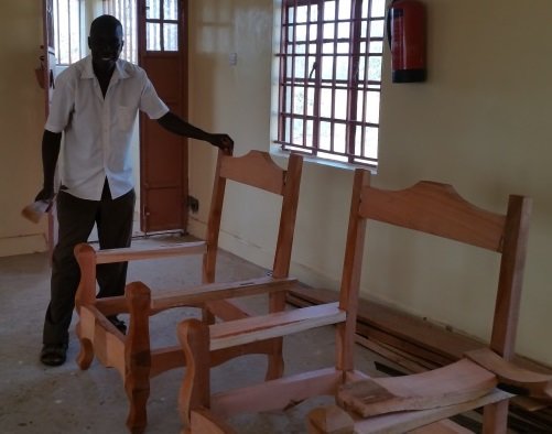 Currently Gabriel, a carpenter who uses facilities at the workshop and in return gives support to Paul with the trainees, is supervising work and training at the workshop. Gabriel is a skilled and enterprising man. Whilst we were there in March this year we saw some of his work. The photos below show some chairs that he was making for a local man. The trainees couldn’t help much with the job but they could see the sorts of tasks to which they might aspire given some training.