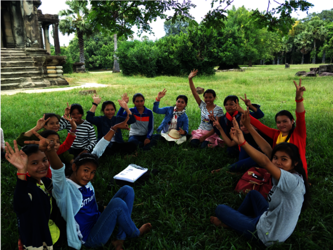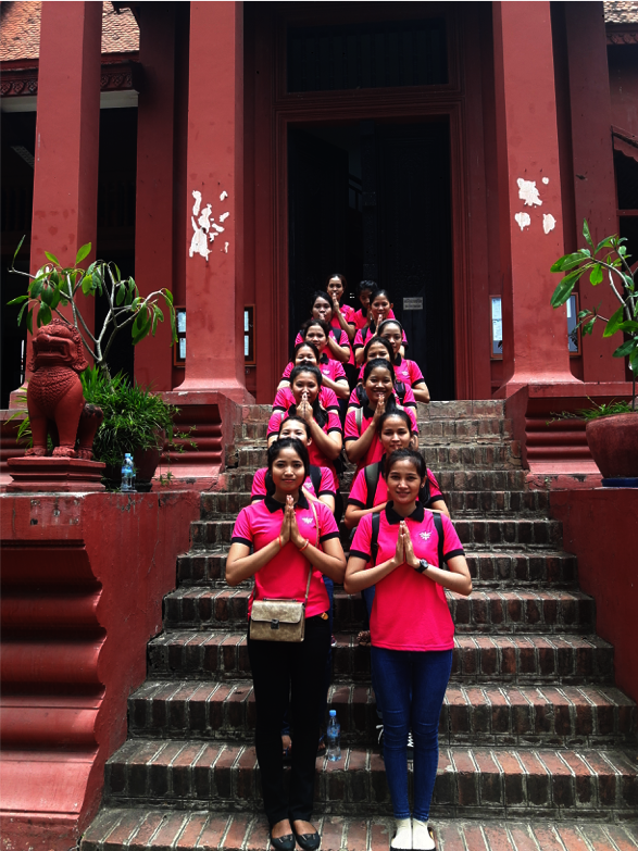 In order to help these village girls become more confident while navigating a city environment, we take them on excursions to places of cultural interest such as the National Museum, the Royal Palace and also to local movies and restaurants. During these visits the young women are given jobs to do such as approaching the ticket booth to get everyone’s tickets and passes, taking charge of refreshments and ordering the food and drinks, being the group leader and etc.