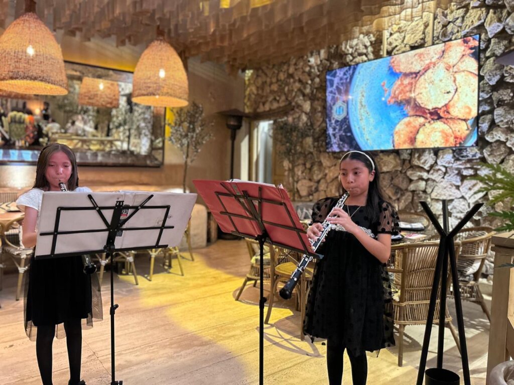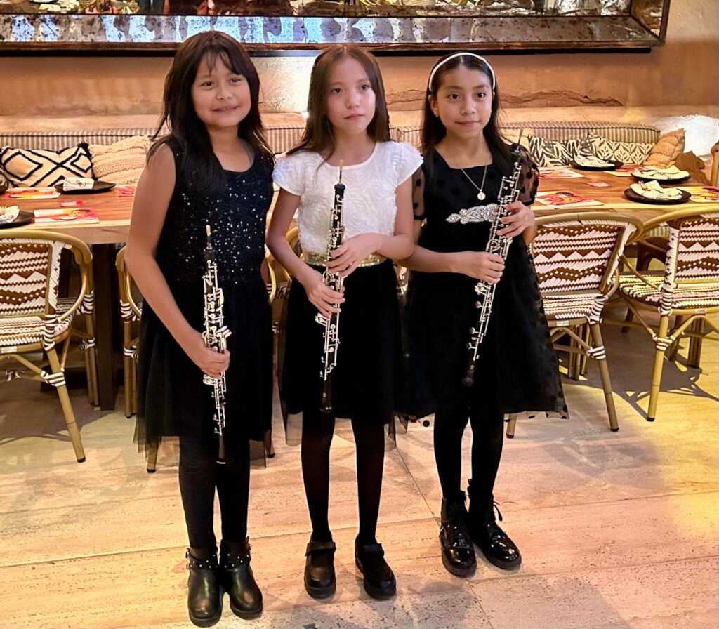 En las últimas presentaciones que hemos tenido, nos han acompañado 3 alumnas del maestro Rodolfo, las cuales no tienen más de 10 años de edad y se enamoraron de su instrumento desde los inicios de la orquesta, hace 2 años.