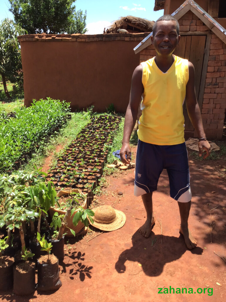Gas is the Gardner in Ambohibary. They were in total 20 benefitting from a special tailor-made reforestation training provided by Zahana, at our school in Fiadanana. He is the only one currently not getting a salary from Zahana who has implemented the technique. His nursery is actually better than the one of the other 4 gardeners paid by Zahana. We plan to change our approach after this season and implement his innovations in all Zahana nurseries.