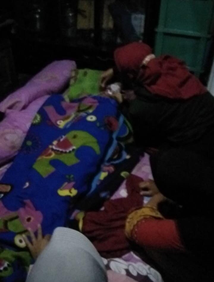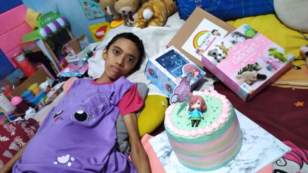 Even though she could not get up, the joy was clearly shown on Alesha's face. She looked with glee at the cake and the various gifts on Dadan’s arms.
