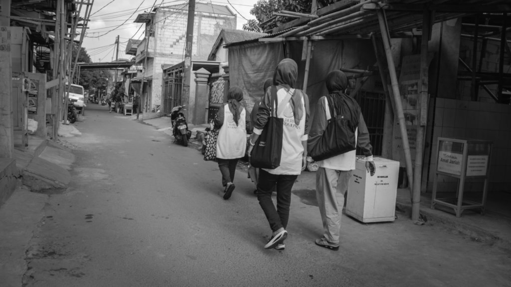 Jakarta nurse Ana walks beside the black water of one of the city’s many canals and navigates through a labyrinth of narrow lanes.