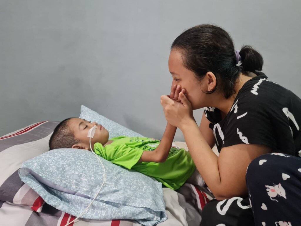 Prior to our visit, the Nurses had told me about the beautiful friendship between Jil and Syafa. Jil is the daughter of Syafa’s aunt, who is the primary caregiver for Syafa now. The girls’ close bonds are perhaps due to their proximity in age. While this feels natural, it is profoundly significant that Jil does not seem to have a single thread of jealousy or anger towards Syafa, even as her mother lavishes all the attention on her young cousin. The girls’ beautiful closeness, and Jil’s generosity of love defy all the textbook warnings of a jealous sibling.