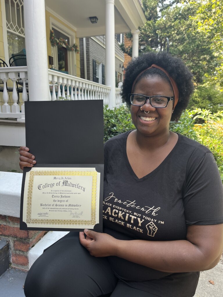At Claudia Booker’s request before her death, full scholarships to our Mercy In Action College of Midwifery Bachelor of Science four-year degree are to be granted to Black/Indigenous students who have shown serious commitment to midwifery by having successfully completed the first two years with a minimum 3.0 GPA, have a signed contract for a clinical apprenticeship with an approved clinical preceptor, and have been attending mentoring meetings with our Scholarship Coordinator and Mentor during the first two years of the program.