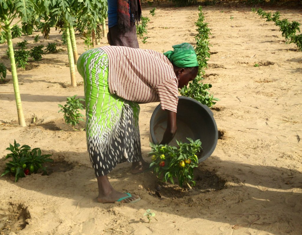 In July and August, CREATE! field technicians worked with community volunteers to rehabilitate existing wells and install solar-powered water pumps and gravity-fed irrigation systems in the Santhie and Dahra garden sites. Now that access to clean, abundant, and affordable water is secured in these communities, CREATE!’s field technicians are beginning to teach women how to grow irrigated vegetable crops.