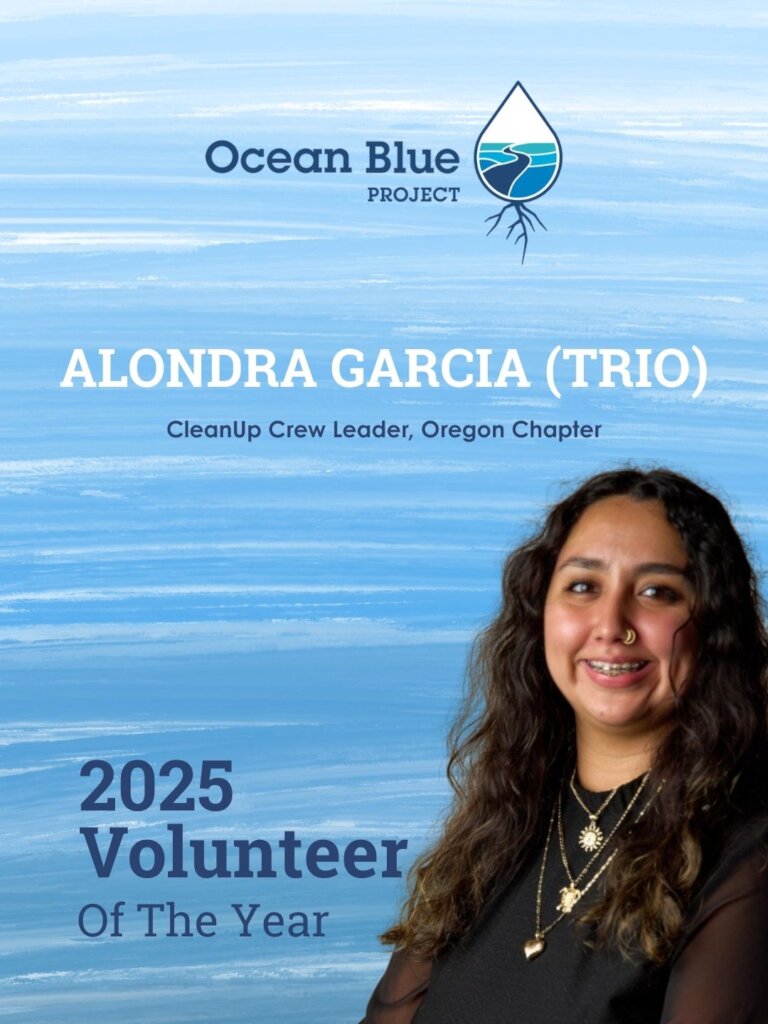 Based in Oregon, Alondra has led cleanups for three consecutive years that bring together TRIO and Upward Bound students and community members at Oregon State University, where the Ocean Blue Project began its mission in 2012, to care for local waterways. In February, Alondra led the group in cleaning up around 200 pounds at the very beach where Ocean Blue Project was founded in 2012.