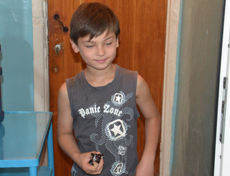 His treatment began 14 months ago, with a 6-month stint at children’s hospital in the capital, Chisinau. During the intensive phase of treatment at the hospital, he endured painful injections. When he returned home to Balti for continuation phase treatment, Speranta Terrei arranged for Angela to be his moderator (treatment supporter), to bring him anti-TB drugs and conduct Directly Observed Therapy (DOT) at home. Because Vladislav suffers severe side effects from anti-TB drugs, his doctors, Lidia and Elena, insisted on monitoring him daily at the TB dispensary. This was not an easy task for his family, afflicted with conditions common in Moldova, poverty and alcoholism. Vladislav’s father abuses alcohol and is unable to take his son daily to the dispensary. Vladislav’s parents are divorced and his mother lives elsewhere with his older sister.