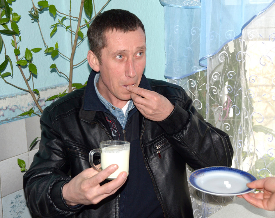 A cup of milk goes a long way! For Valentin Turcan of Soldanesti, the creamy milk in the attached photos symbolizes his recovery from tuberculosis. As happens to so many of his fellow Moldovans, Valentin sought to earn a living as a migrant construction worker and became ill with TB. Upon his return to Moldova, he was hospitalized in 2013 in Chisinau for intensive phase treatment for drug-susceptible tuberculosis and then went home to Soldanesti to continue treatment. There, he asked his moderator, Claudia, if he could go to her house instead of the dispensary to take TB drugs. Claudia, a medical assistant, agreed readily. Every evening, she greeted Valentin with his drug regimen along with a nourishing cup of milk from her own cow. Claudia says, “Even my husband became involved and reminded me to set aside milk for Valentin.”