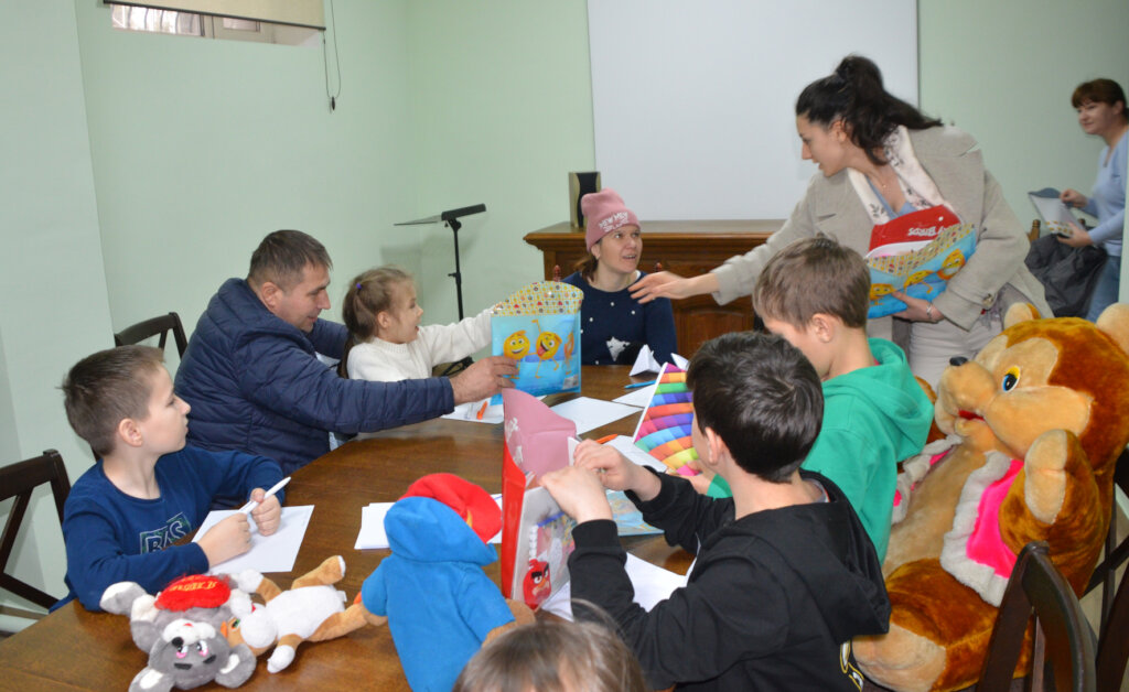 Ion Creanga High School’s Council of Students raised 2500 lei (Moldovan currency) in donations and purchased colored pencils, pens, markers, sketch books, modeling clay, and water colors. In early March, students Madalina and Damiana along with their teacher, Irina, packed these into folders and presented to 25 children aged 6 to 11. The children and parents gathered in our Centre’s conference room and spent time together drawing and chatting. The high school students explained how they were motivated to act, “We can only imagine these children’s sufferings, knowing their families’ circumstances, but we are aware it is more difficult for them than for us and we decided to offer them a little support, to make them feel nice and smile, to spend some time with them and know them better.”