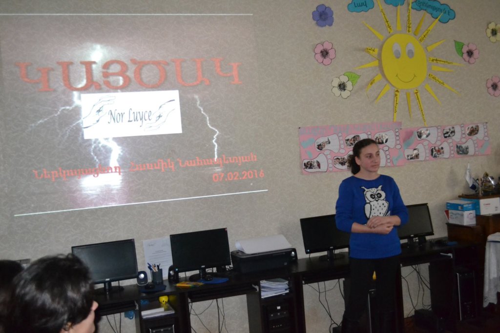 2 of the mentees gave Power-Point presentations on stereotypes, discrimination and healthy living for GLOW campers organized by Peace Corps, Nor Luyce Mentoring Center for Youth and Youth Inititive Center NGOs.