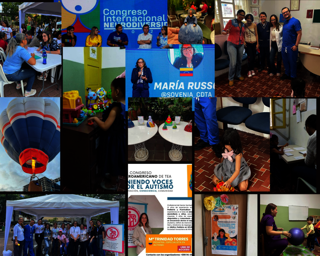 Sovenia has been pretty active during these past months of April and May. First in the afternoon of April 2nd, for Autism Awareness Day, and with the help of an important pharmacy, at a local public square of Caracas, we held a free screening of autism for 57 families, and we carried it out with the help of volunteer doctors, psychologists, gastroenterologists and educators (9 in total). We also had fun activities for the children, and even had a big air balloon at the end. Some of the children and their parents went up, up, and a little away on the balloon. At the end of April ,Sovenia was invited to an International congress in the city of Lechería,Anzoategui state, where we spoke about the contributions of SOVENIA after 45 years of its foundation, as well as of the scientific and medical aspects that bring well-being to our children, adolescents and adults in the Autism Spectrum. Another one of our doctors participated as speaker at a virtual conference called "Voices for Autism" of an association in Uruguay..