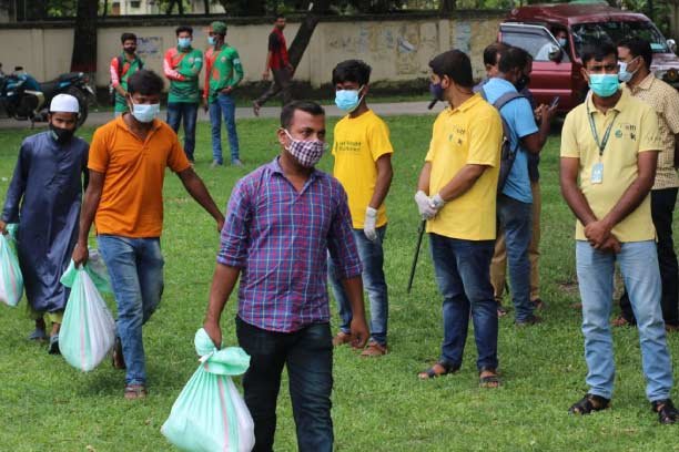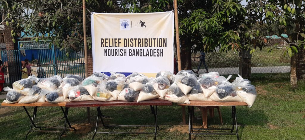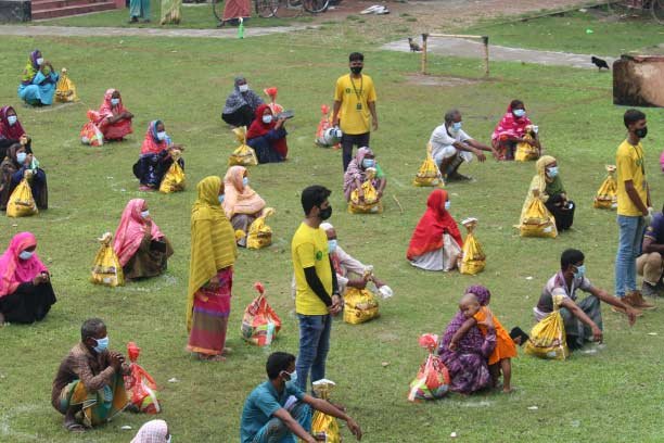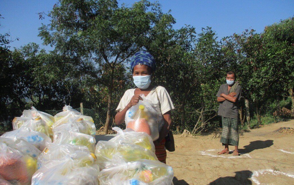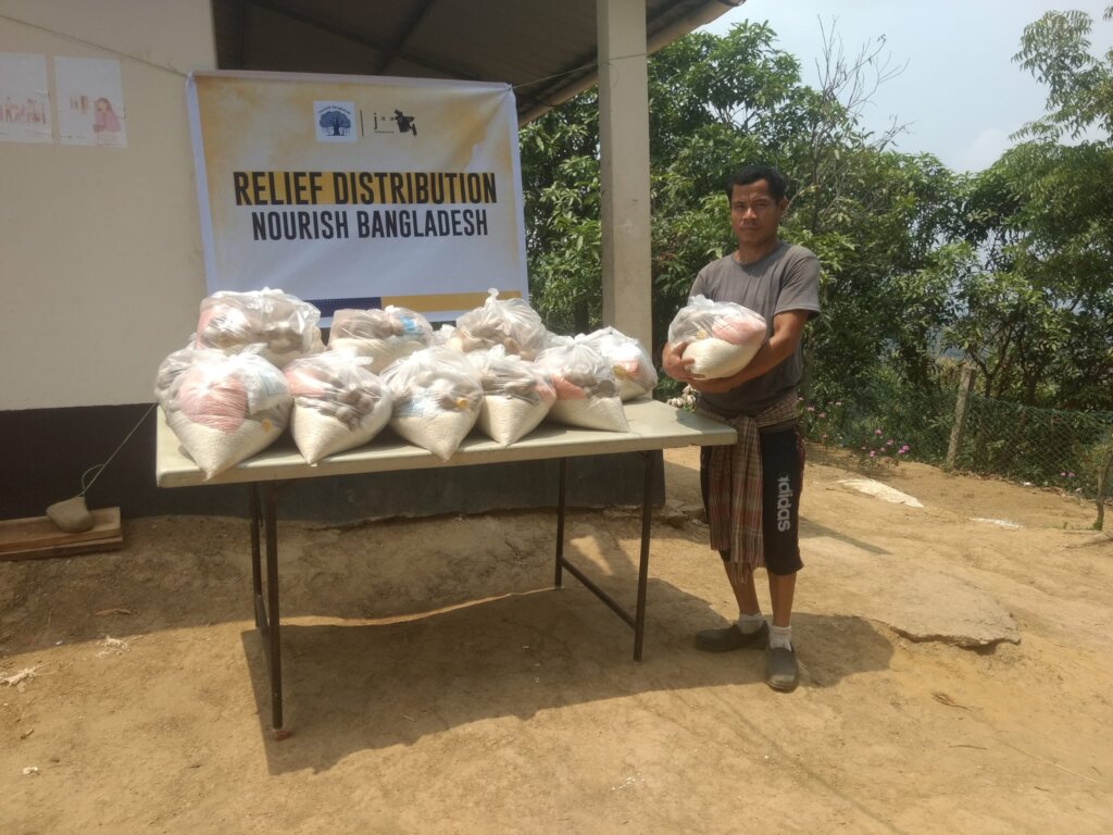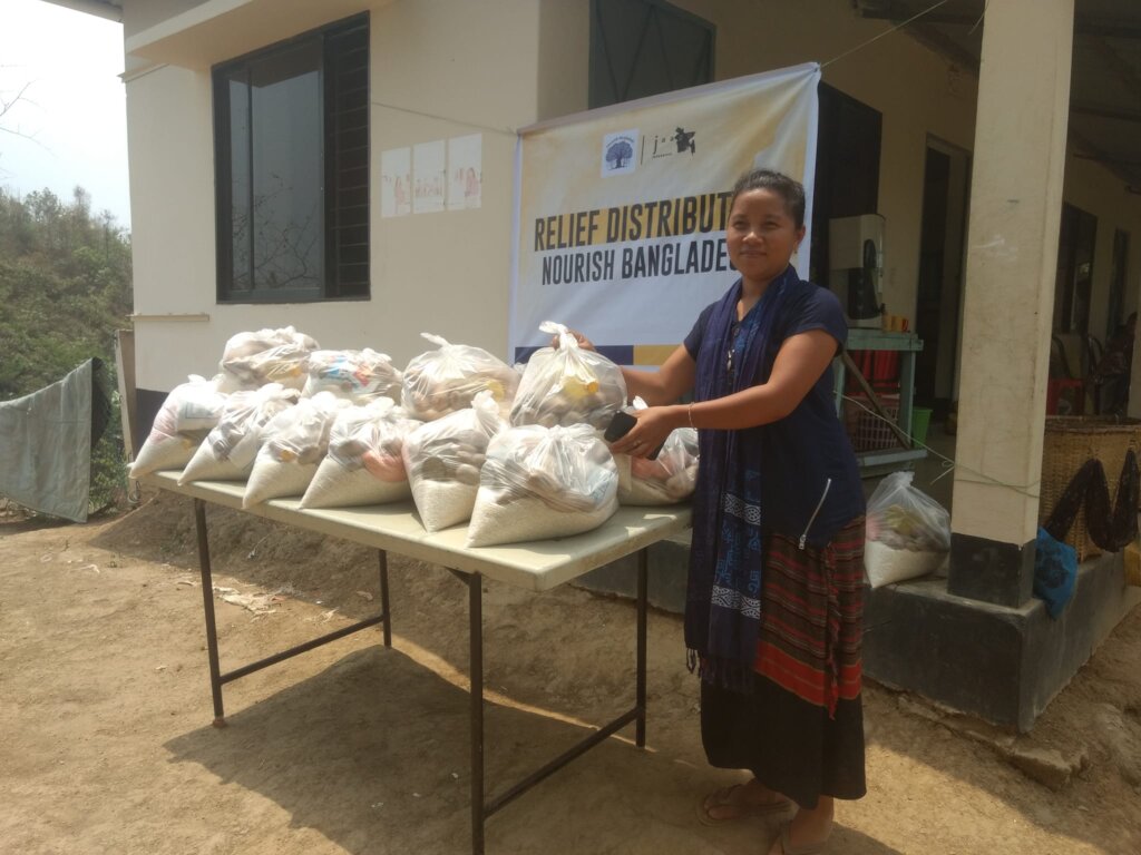 Under the COVID-19 resistance war, the underprivileged people in society are still suffering the most. They are dealing with the difficult reality of life on a regular basis and struggling to put food on the table. In such a situation, JAAGO Foundation continued the initiative for the underprivileged people and responded to the humanitarian crisis by providing food support. A few days ago, with your support and Nourish Bangladesh's contribution, in Bandarban and Teknaf, we distributed rice, flour, lentils, potatoes, oil, salt, and so on, including soaps and masks to the underprivileged families. The volunteers and the management team maintained proper hygiene and social distancing in the distribution areas.