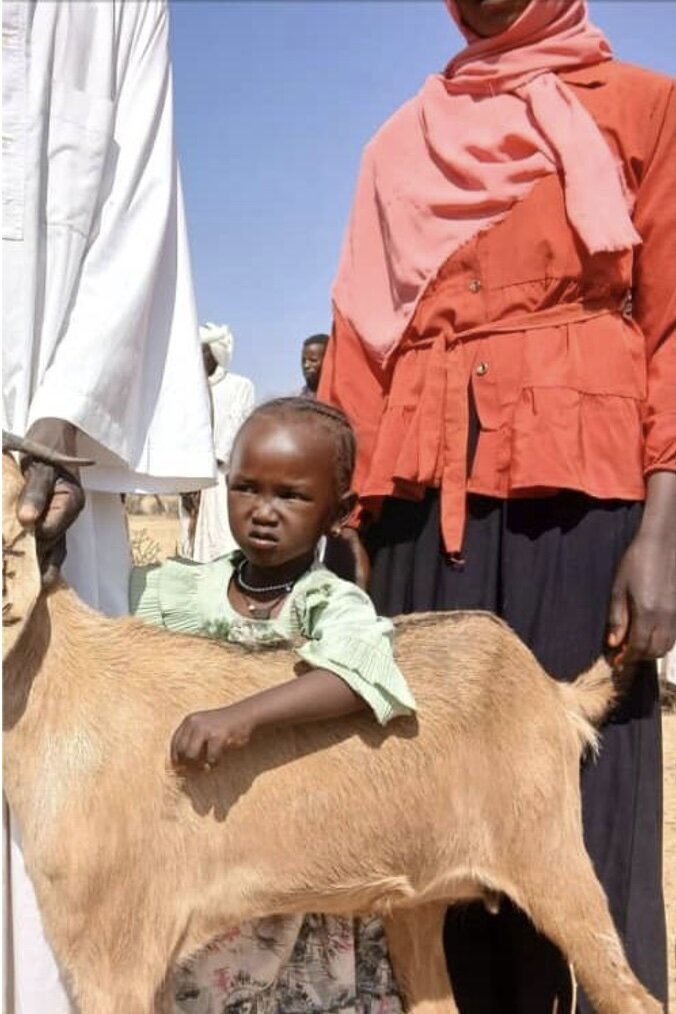 In 2024, Nadia and her family were selected by the village Animal Loan Committee to receive goats in the third Goat Loan Rotation. Nadia and her husband have three small children, all under the age of five. For the past two years, their goats have provided fresh, nutritious milk every day, building up their strength and keeping them fed when little other food has been available in Sudan.